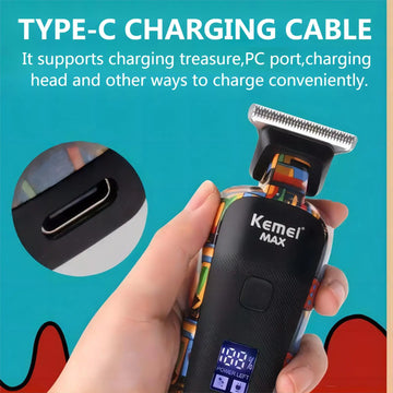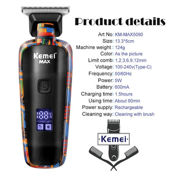 Kemei-5090 Hair Trimmers with Digital Display, Professional Barber Pusher for Men, Random Graffiti Pattern Hair Clipper Electric