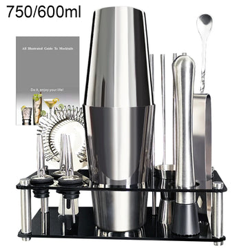 13-22Pcs 750ml 600ml Boston Cocktail Shaker Bar Tools Wine Mixer Set Bartender Cocktail Shaker Tool Kit with Holder
