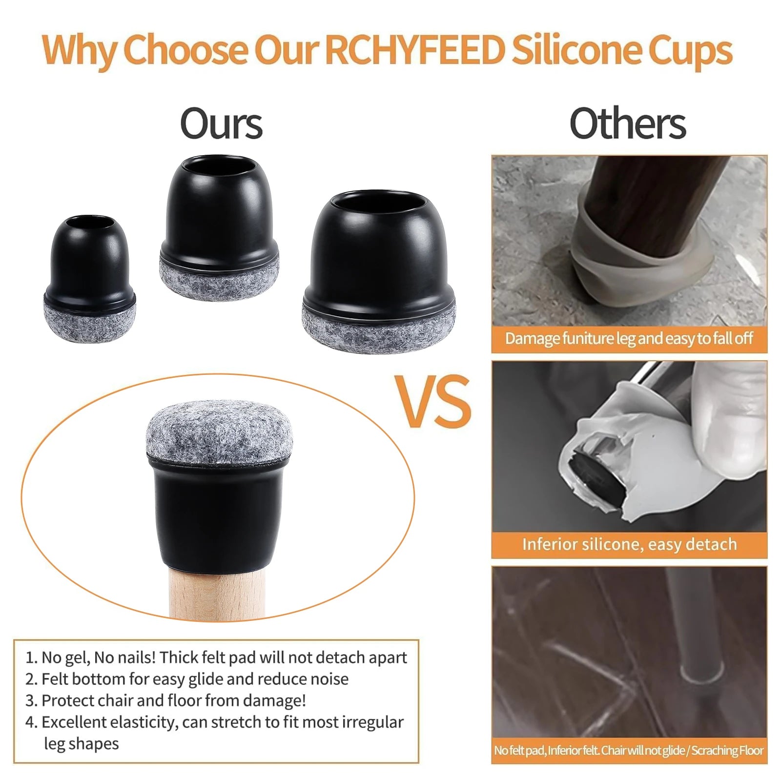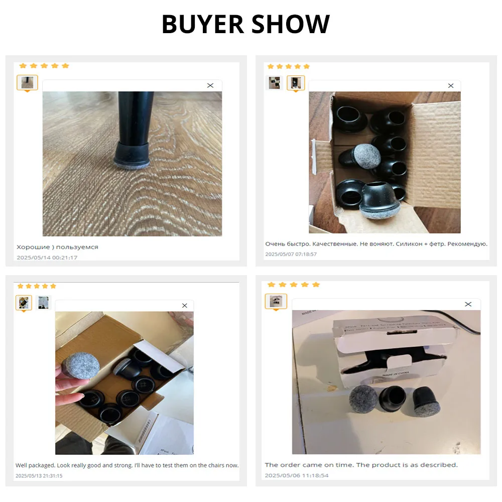 3. Thick and Tear-Resistant Design: Chair leg floor protectors feature a thickened inner wall of 2mm, compared to the standard 1mm on the market. This high-elasticity design ensures they won't fall off, tear, or wear out quickly, providing a longer service life.