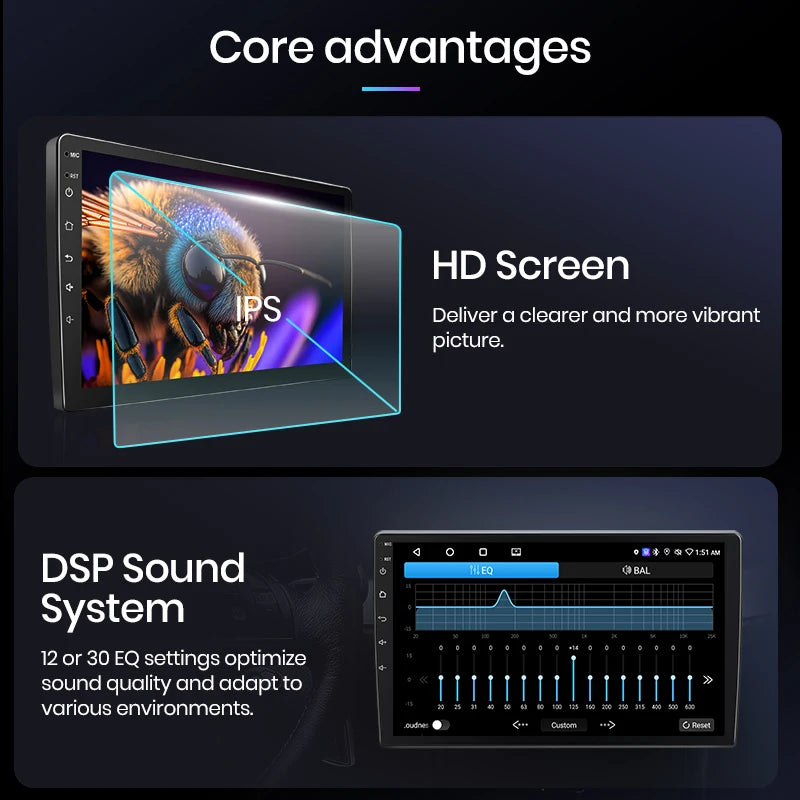 �� Performances audio supérieures pour voiturestiCet Autoradio Android est doté d'un DSP intégré. Et il y a un égaliseur graphique de 12 à 48 bandes, vous per mettant d'ajuster et d'adapter l'expérience d'écoute à votre goût.