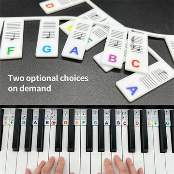 1.No-glue, no need stick,the note strip is made of silicone, and connects the labels in series, so there is no need to stick to the keys like piano stickers. easy-to-install, easy-to-remove, without leaving any-residue, and keeping your keyboard clean and tidy.