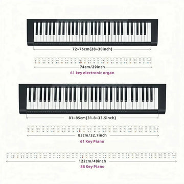 3. 88 key full-size,fits standard sized 88/61-key pianos. perfect for grand pianos, upright pianos, 88/61-key digital pianos and keyboards.