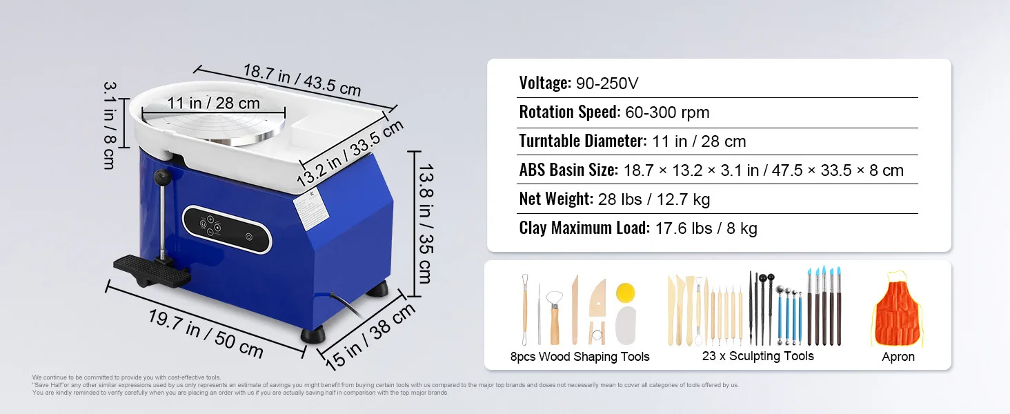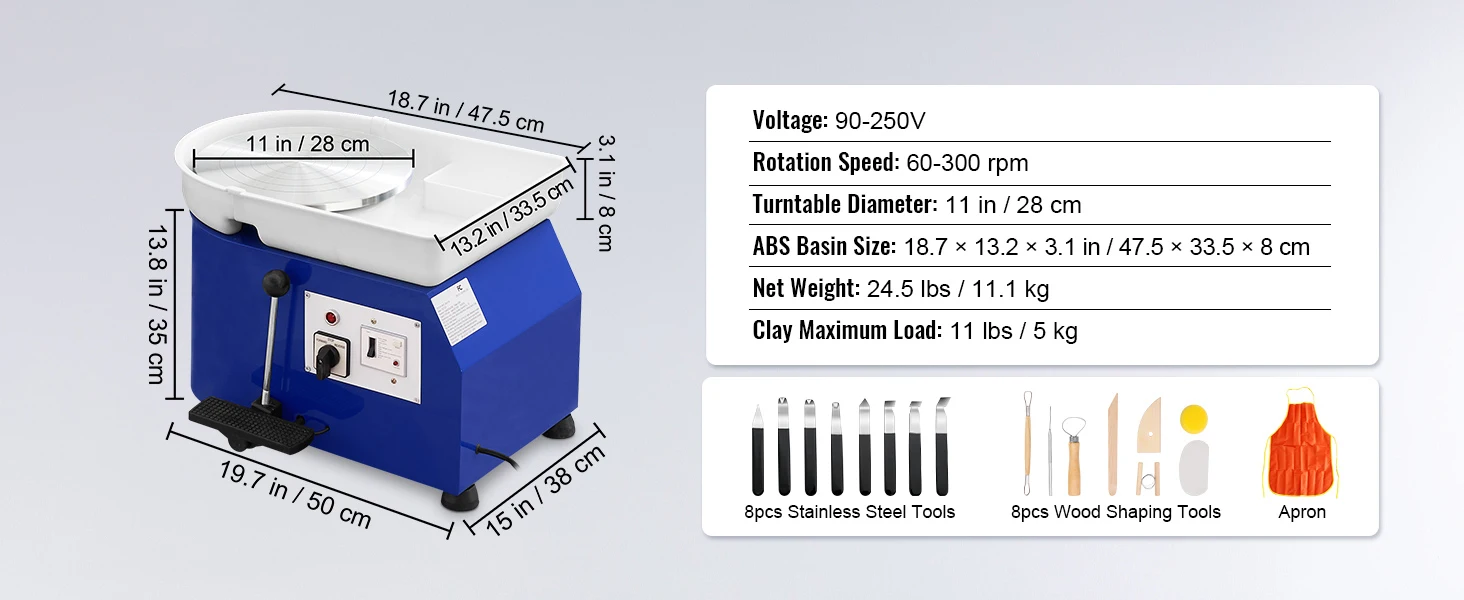Complete Sculpting Tools: This kit includes everything you need to sculpt masterpieces, from a 8-piece stainless steel toolset to an 8-piece wood set and even a waterproof apron. Whether you're a professional in the studio, a teacher in the classroom, or a DIY enthusiast at home, this machine is versatile enough to bring your vision to life. Get ready to mold, shape, and create ceramic works of art like never before!